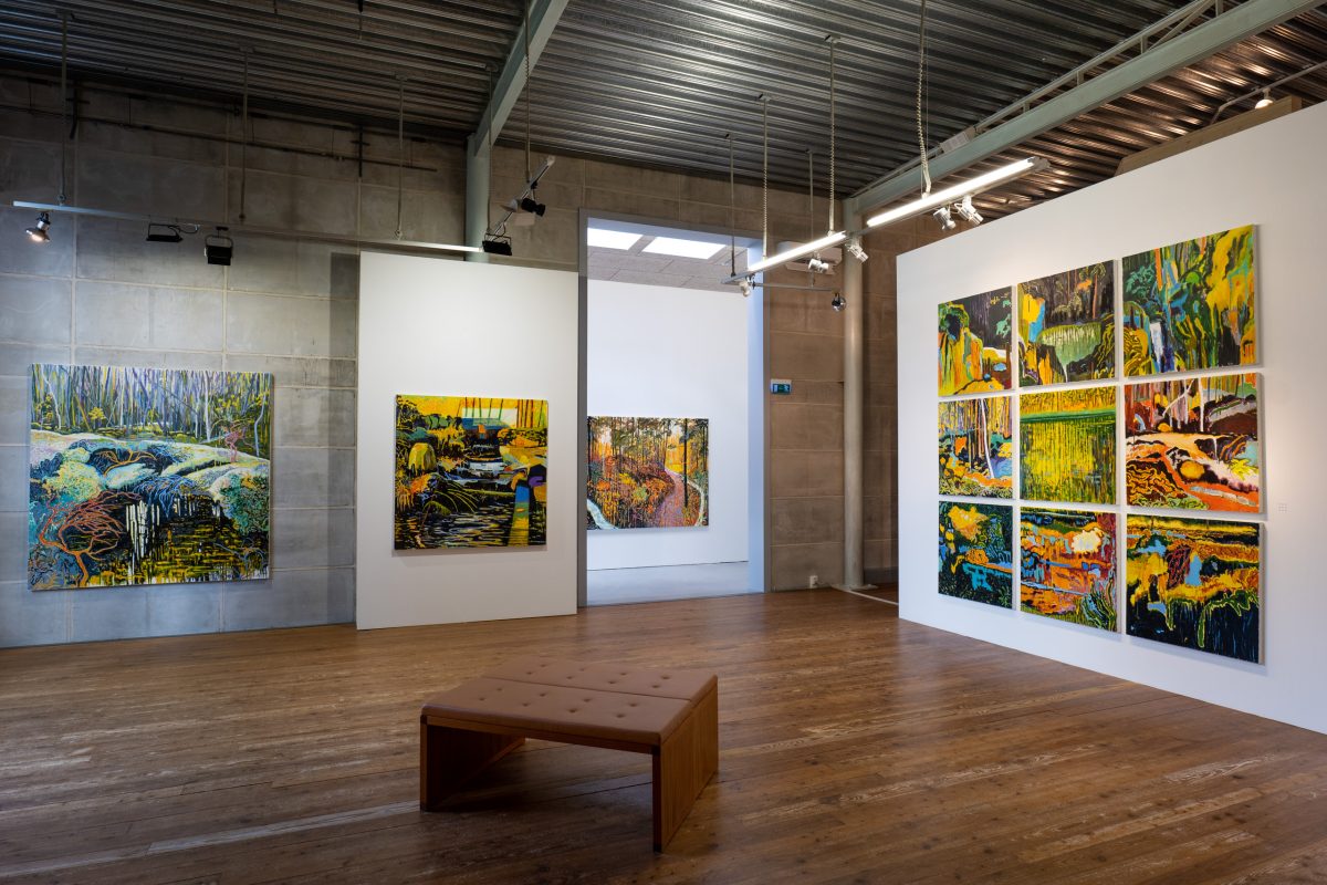Ingenting och allt har ändrats de senaste tre åren. Vi har alla varit med om en tid ur led vad gäller hälsa och möjligheter att röra sig och resa. Två år har jag isolerats på ön i hopp om att slippa pandemins åverkan. På gott och ont. Det goda är mina utforskningar av reservatet på ön jag lever min mesta tid på. Vindö Park min egen 3D projektion av naturen, ett måleri med klippor, träd, rododendronbuskar, mossor och lingonris som växer samman i ett naturligt samtal om naturens nätverkande, har jag bokstavligen framför ögonen. Under åren som gått sedan utställningen Alla Landskap 2019, har jag och vår hund Lizzy korsat våra spår otaliga gånger i skogens nätverk av stigar.