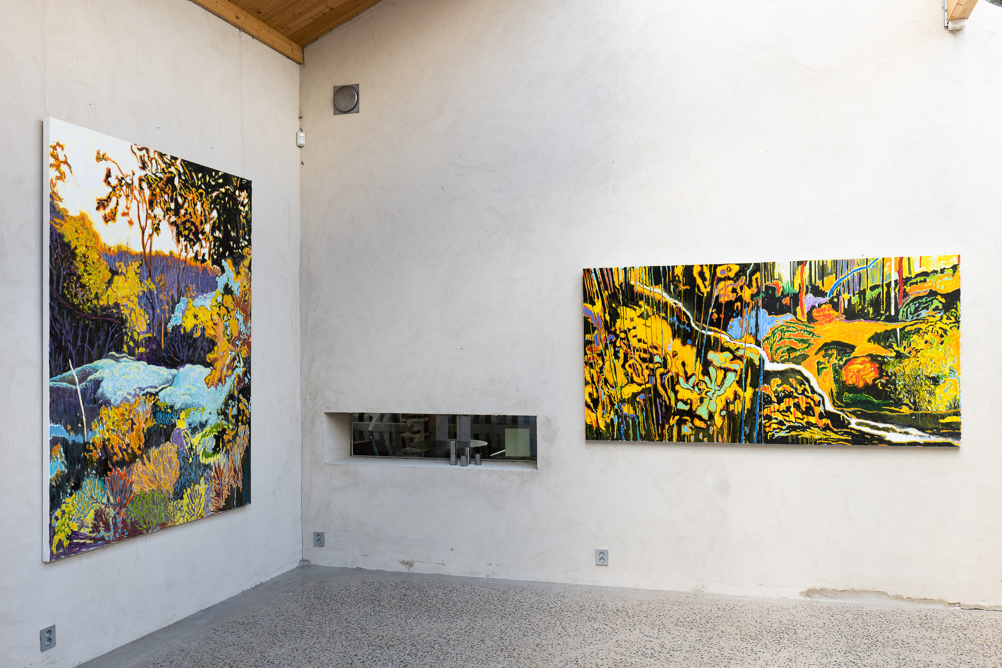 Inför denna utställning känns det nästan som Du har haft blicken ner i buskar, bland rotvältor och kärr. Faktiskt lite likheter med hur Ditt måleri såg ut under mitten av 1980-talet, i alla fall upplever jag det så. Naturligtvis med en helt annan färgpalett, men ändå!