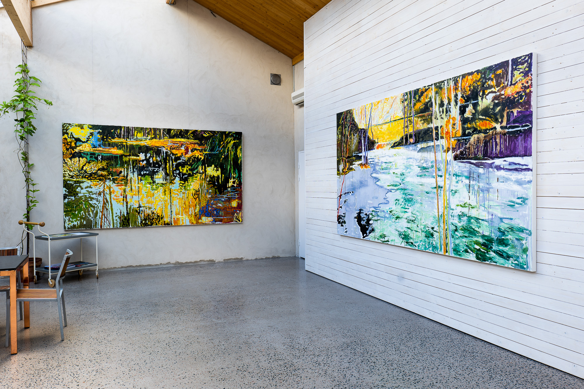 Björn Wessman på Konsthallen Hishult behöver väl knappast någon djupare och övertygande presentation. De flesta som har upplevt någon av Björns sommarutställningar (senast 2019) lär inte ha glömt detta. Denna gång kommer det ändå kännas nytt. De storslagna panoramorna av den Svenska fjällvärlden eller de Franska vinfälten har bytts ut mot träsk och kärr från Värmdös snårskogar. Björn har hämtat inspiration och motiv från sin närmiljö i och omkring ateljén i Sollenkroka på Värmdö, Stockholms ytterskärgård. En oväntad men spännande känsla som osökt för tankarna till Björn Wessmans måleri på 80-talet, men med en kanske starkare kolorit än någonsin. Var beredd och håll i hatten! Björn kommer också att ge ut en ny bok, PANGEA, som kommer att finnas till försäljning under utställningen.